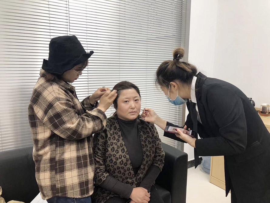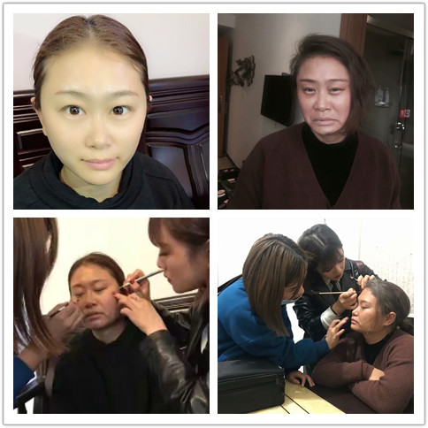對于在學(xué)習的化妝師而言,每一次實際操作的機會都值得珍惜,因為正是一次次的動手去“做”,去“完成”,讓自己的化妝技術(shù)得到積累和提升。對于還未出師的學(xué)員們來說,每一次實習的機會更是難能可貴。 ···· 11月下旬,某劇組在樂清虹橋取景拍攝微電影,樂清陽洋化妝美甲紋繡學(xué)校,楊洋校長、帶領(lǐng)國際化妝班的學(xué)生、糖糖、雪麗、程亞 、 群英、以及和王老師 小喬老師 菲菲老師 安迪老師前往劇組參與化妝工作、該劇組的演員大多數(shù)是20出頭的年輕人,扮演59歲左右年齡階段的老頭子和老太太的角色,同學(xué)們學(xué)習了老師平時在課堂上講的老年妝的畫法可以利用起來。