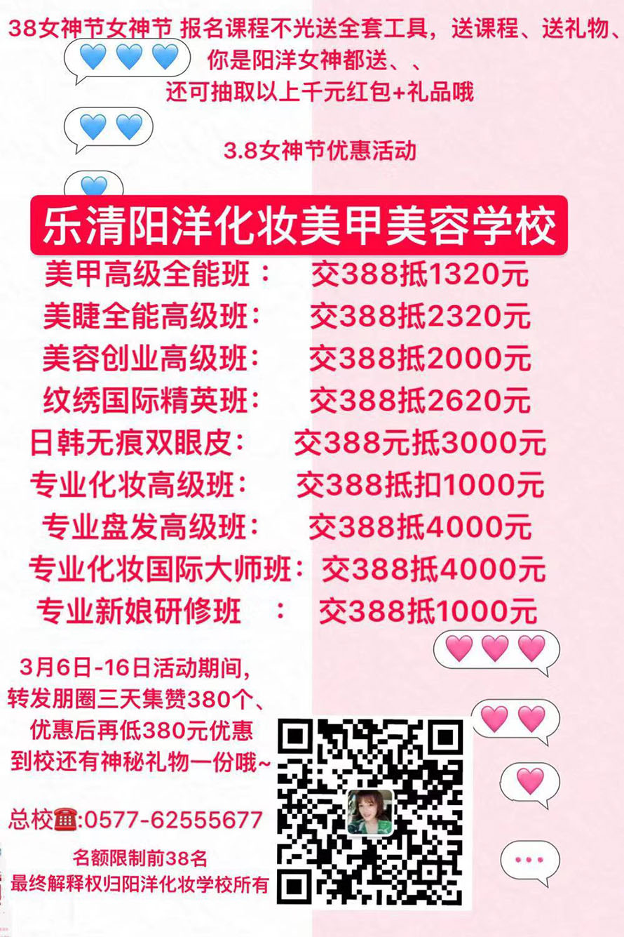- 樂清陽洋化妝培訓(xùn)學(xué)校喊你來砸金啦!你還在等什么?
