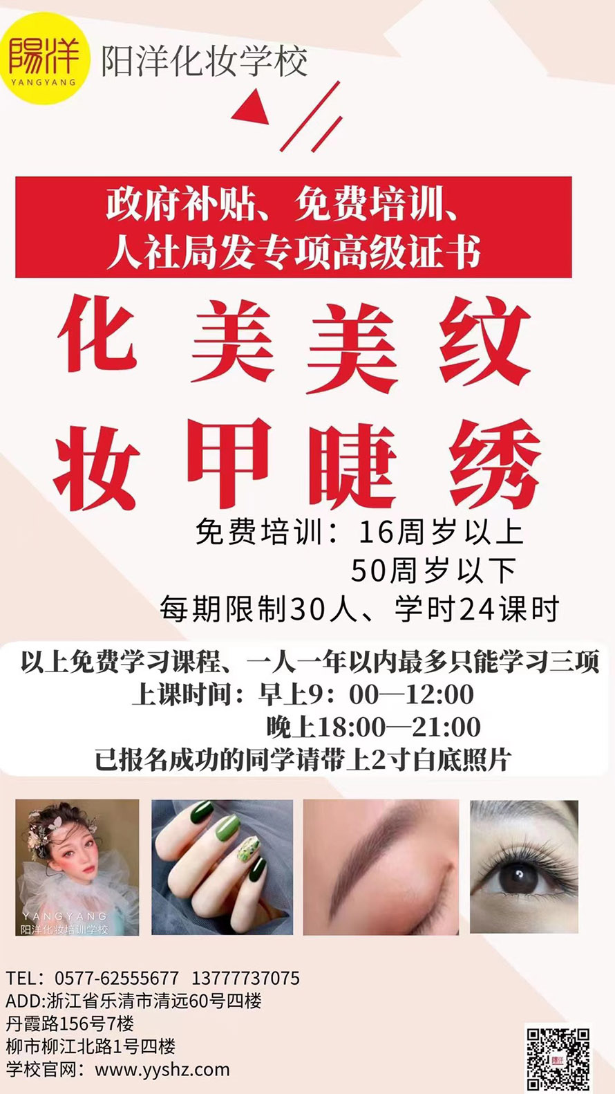 免 費培訓專業(yè):化妝、美甲、美睫、紋繡