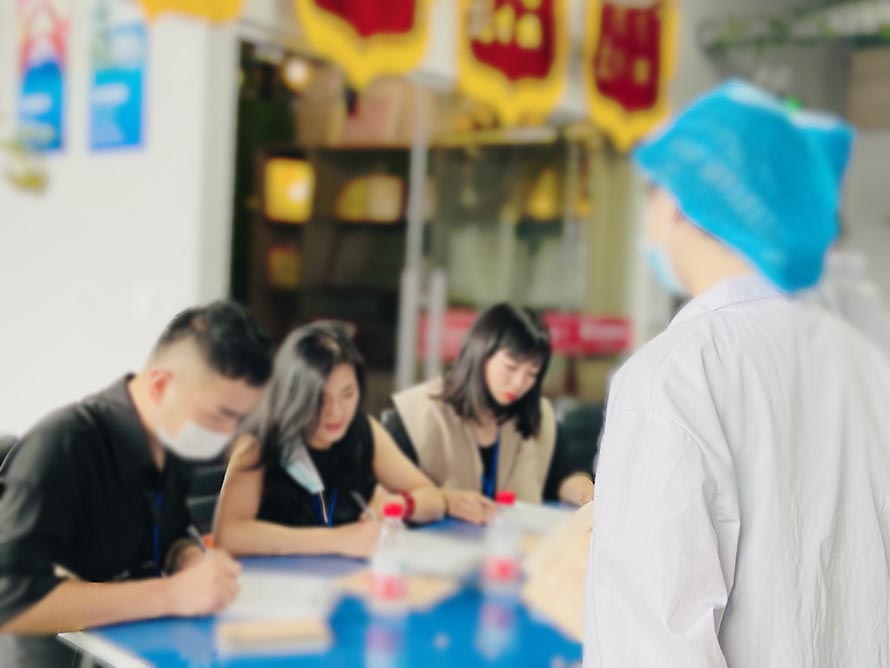 在打分之前、領(lǐng)導(dǎo)在跟楊校長講解本次考試的規(guī)則。
