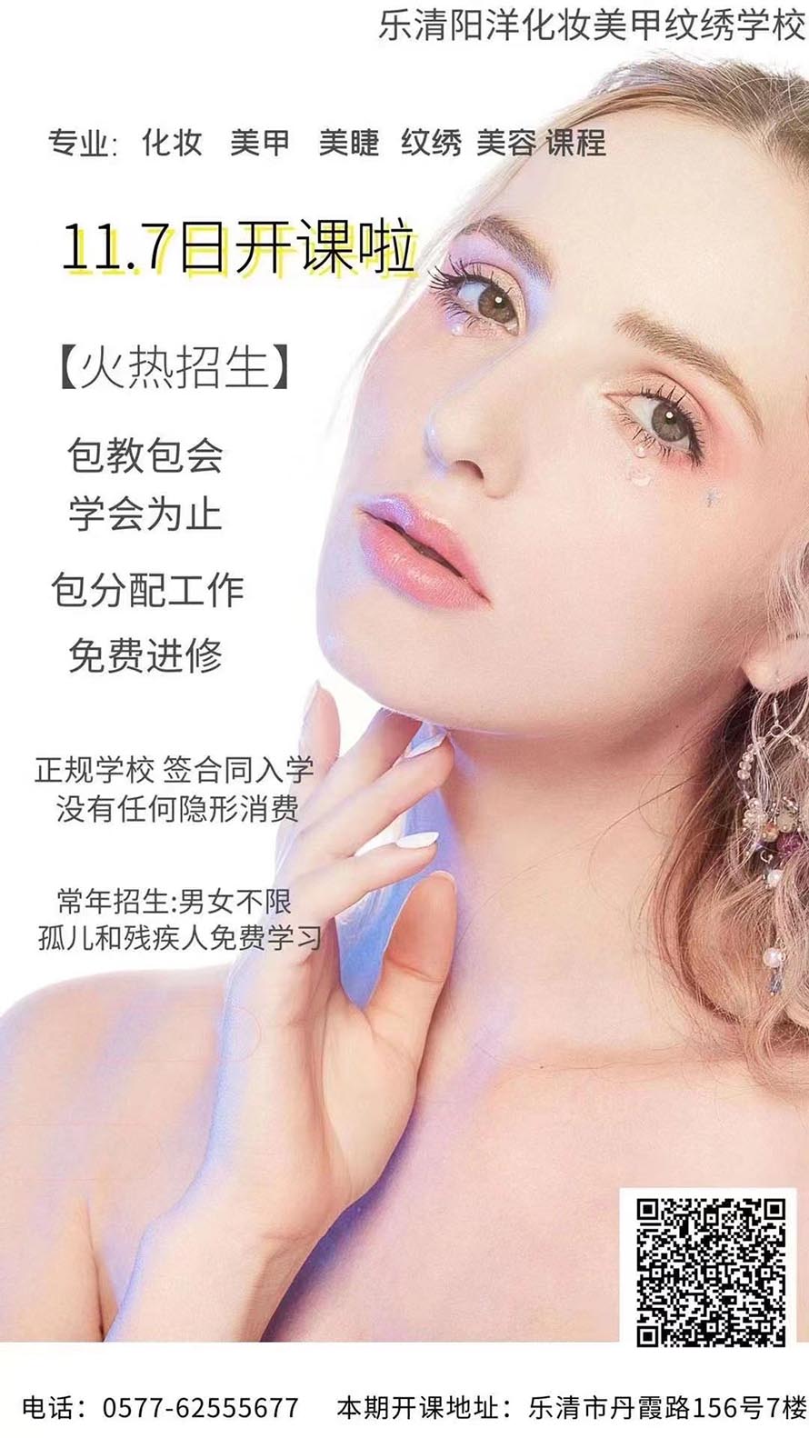 當(dāng)前位置:樂清市陽洋職業(yè)技能培訓(xùn)學(xué)校 » 學(xué)校新聞2021年11月開課時(shí)間表#樂清哪里有學(xué)化妝美甲紋繡美睫美容#溫州學(xué)化妝發(fā)布時(shí)間:2021-11-5 9:33:48 瀏覽次數(shù):1973 |