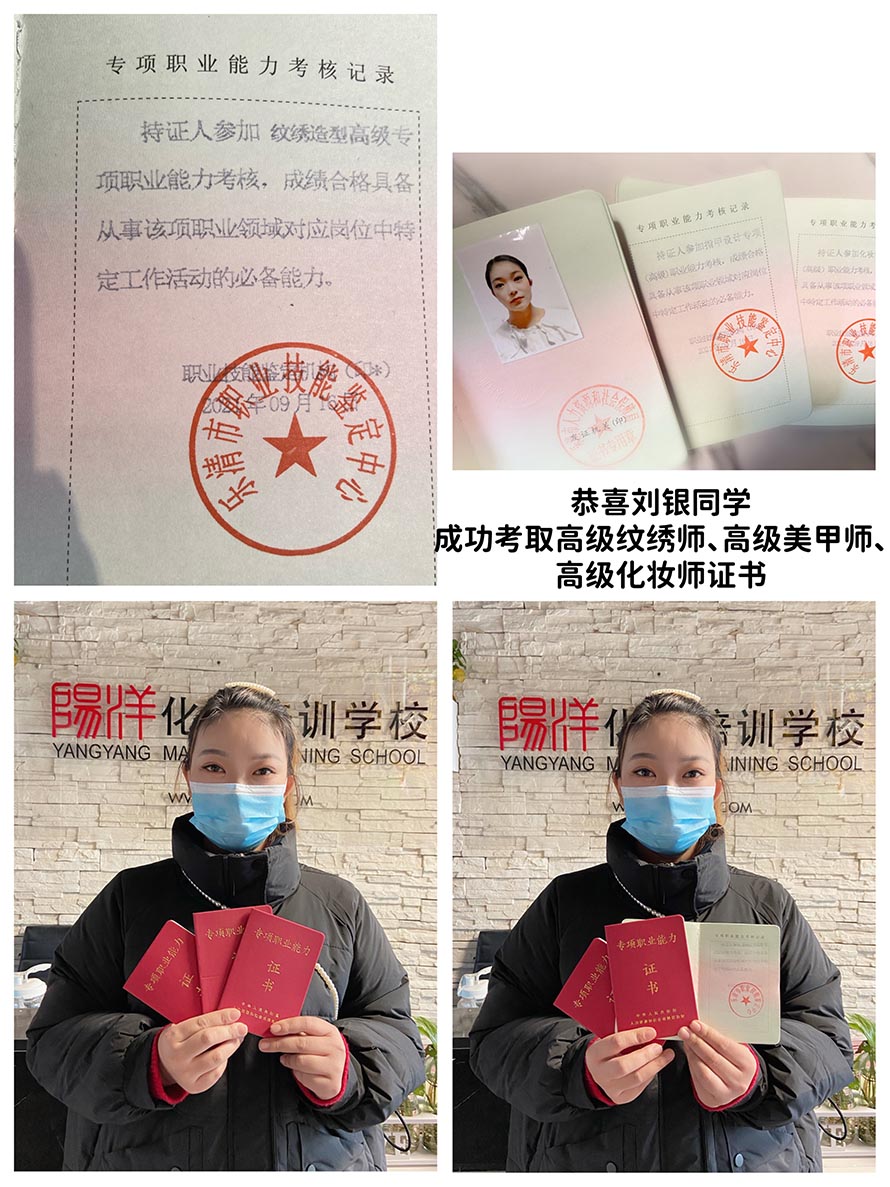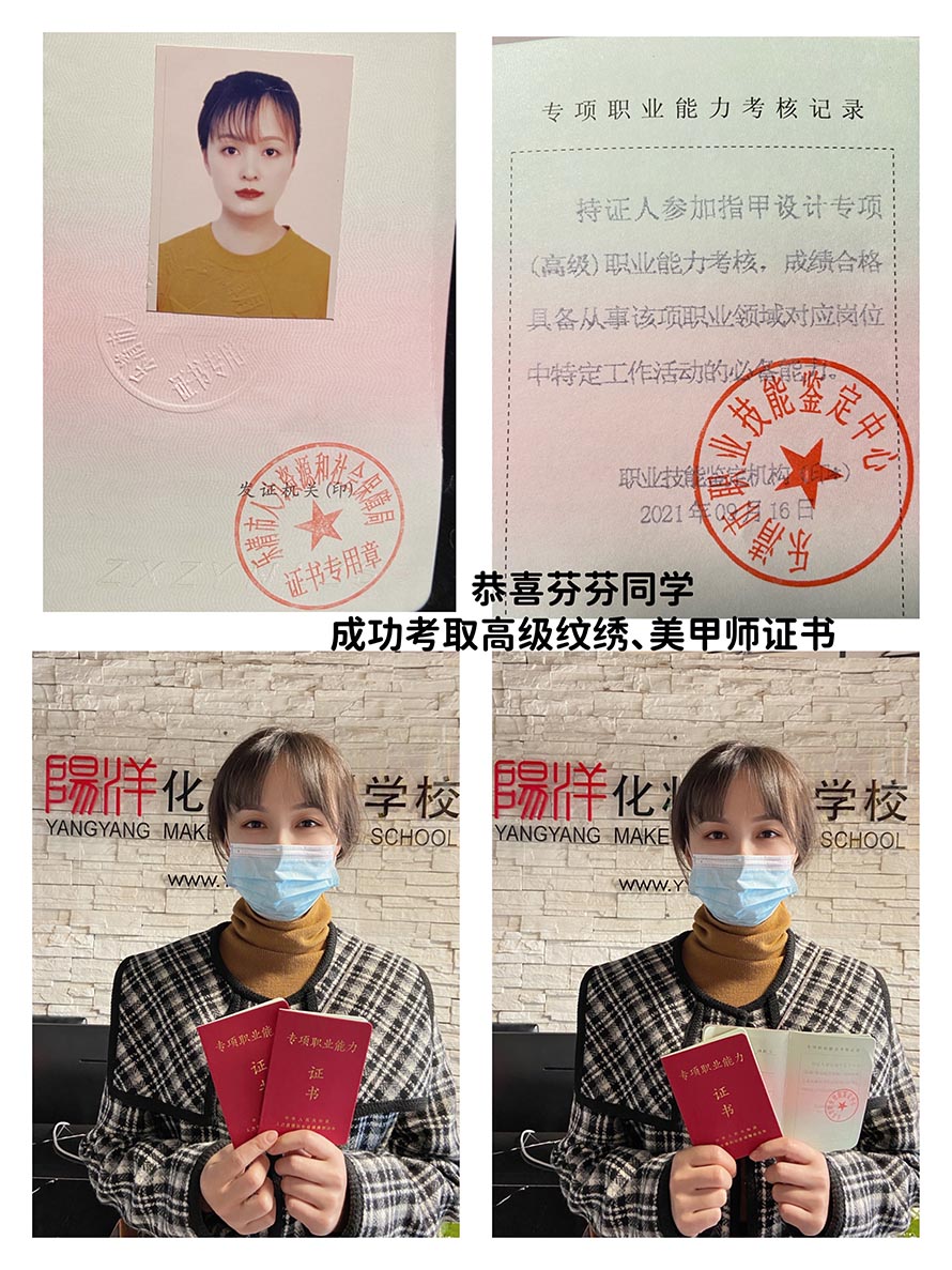 當前位置:樂清市陽洋職業(yè)技能培訓學校 » 學校新聞2021年陽洋化妝學校學生全體通過考試拿到高級證書!學化妝學美甲紋繡美睫美容就來陽洋化妝學校發(fā)布時間:2021-12-21 16:20:53 瀏覽次數(shù):1984 |