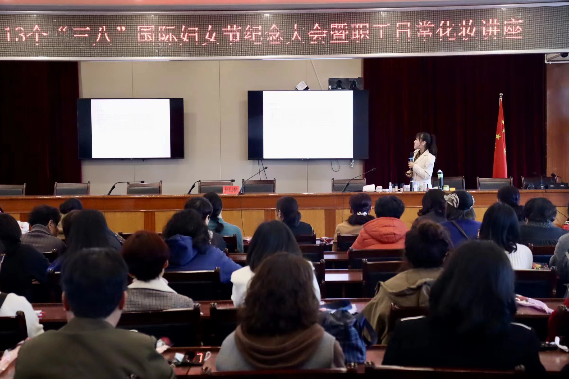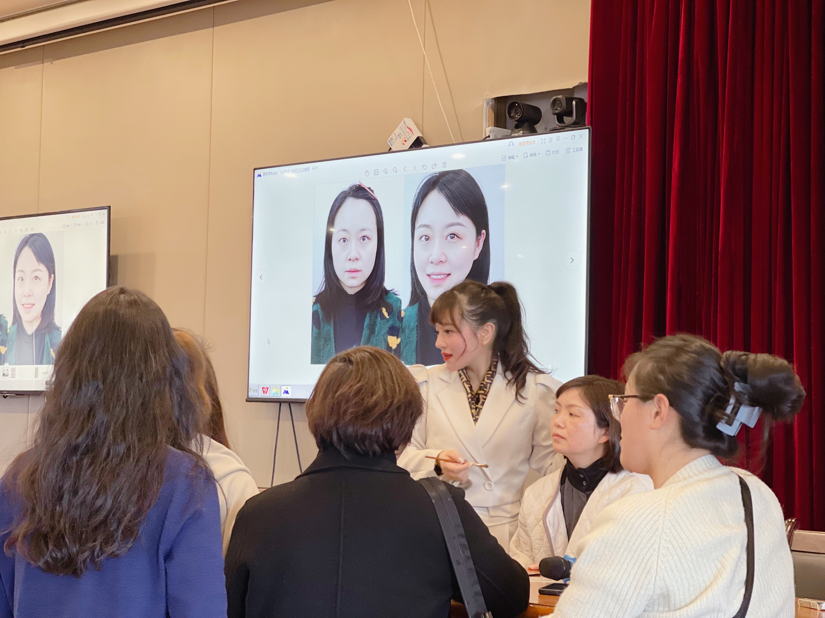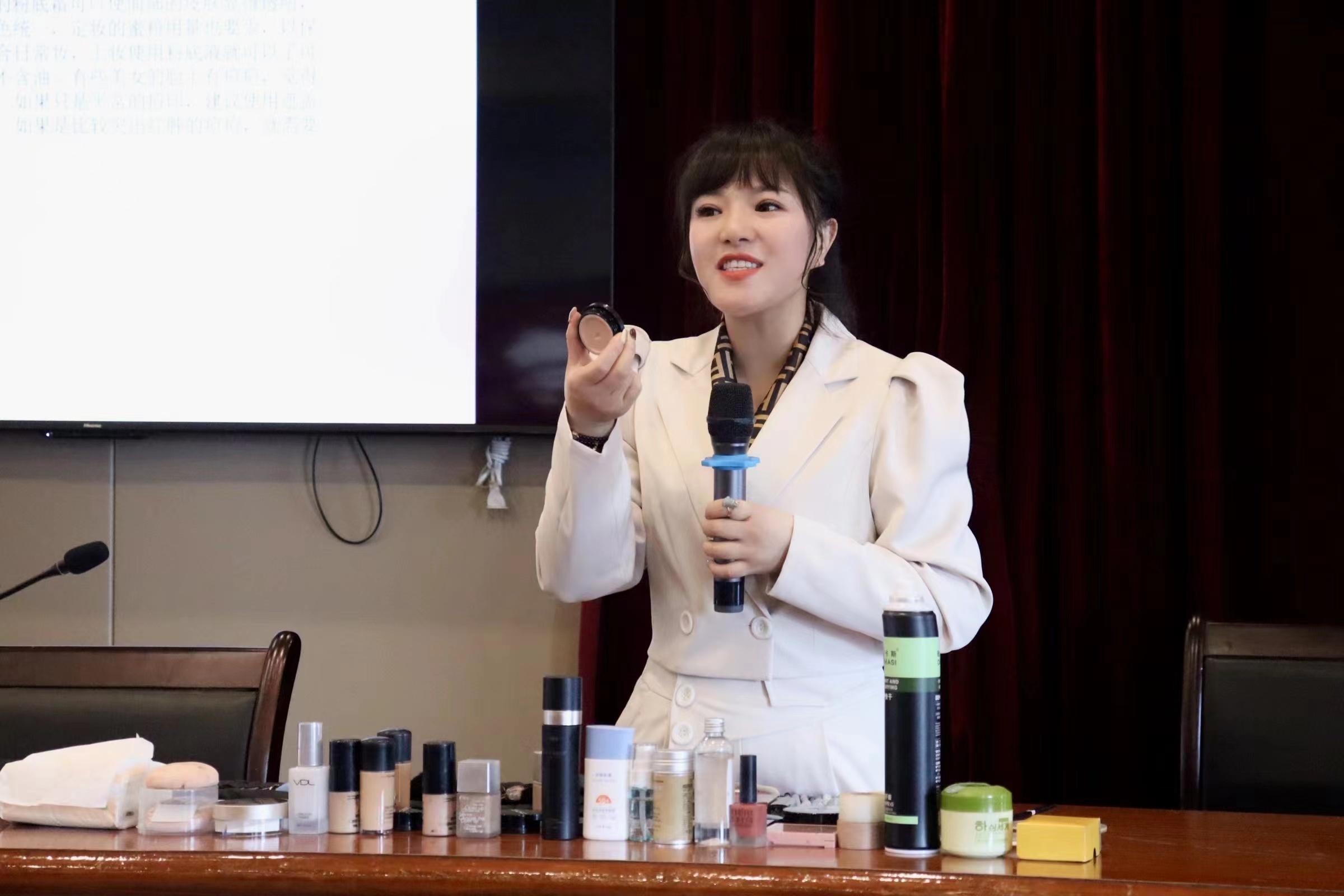 2023年3.8女神節(jié) 陽洋化妝職業(yè)培訓(xùn)學(xué)校很榮幸受樂成街道的邀請 由學(xué)校創(chuàng)始人楊娜娜為機關(guān)單位女性同胞授課——自我化妝班 開展公益化妝講座,再次感謝總工會的邀請