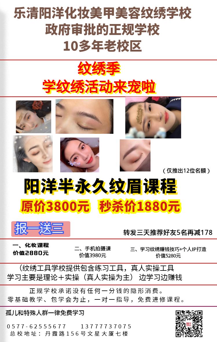 - 樂(lè)清陽(yáng)洋化妝培訓(xùn)學(xué)校喊你來(lái)砸金啦!你還在等什么?