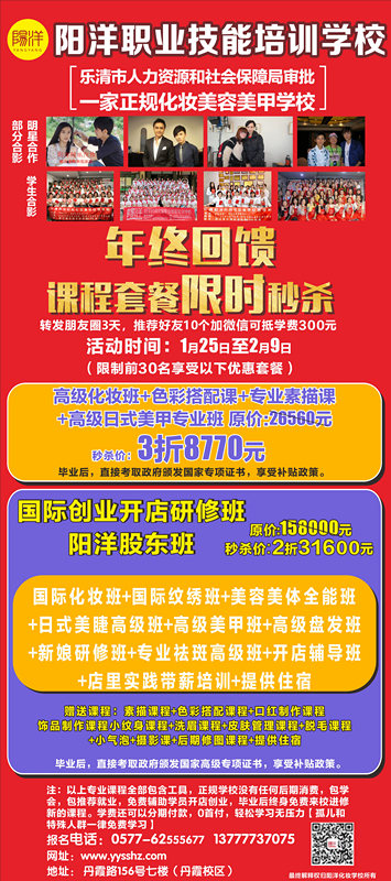 - 樂(lè)清陽(yáng)洋化妝培訓(xùn)學(xué)校喊你來(lái)砸金啦!你還在等什么?