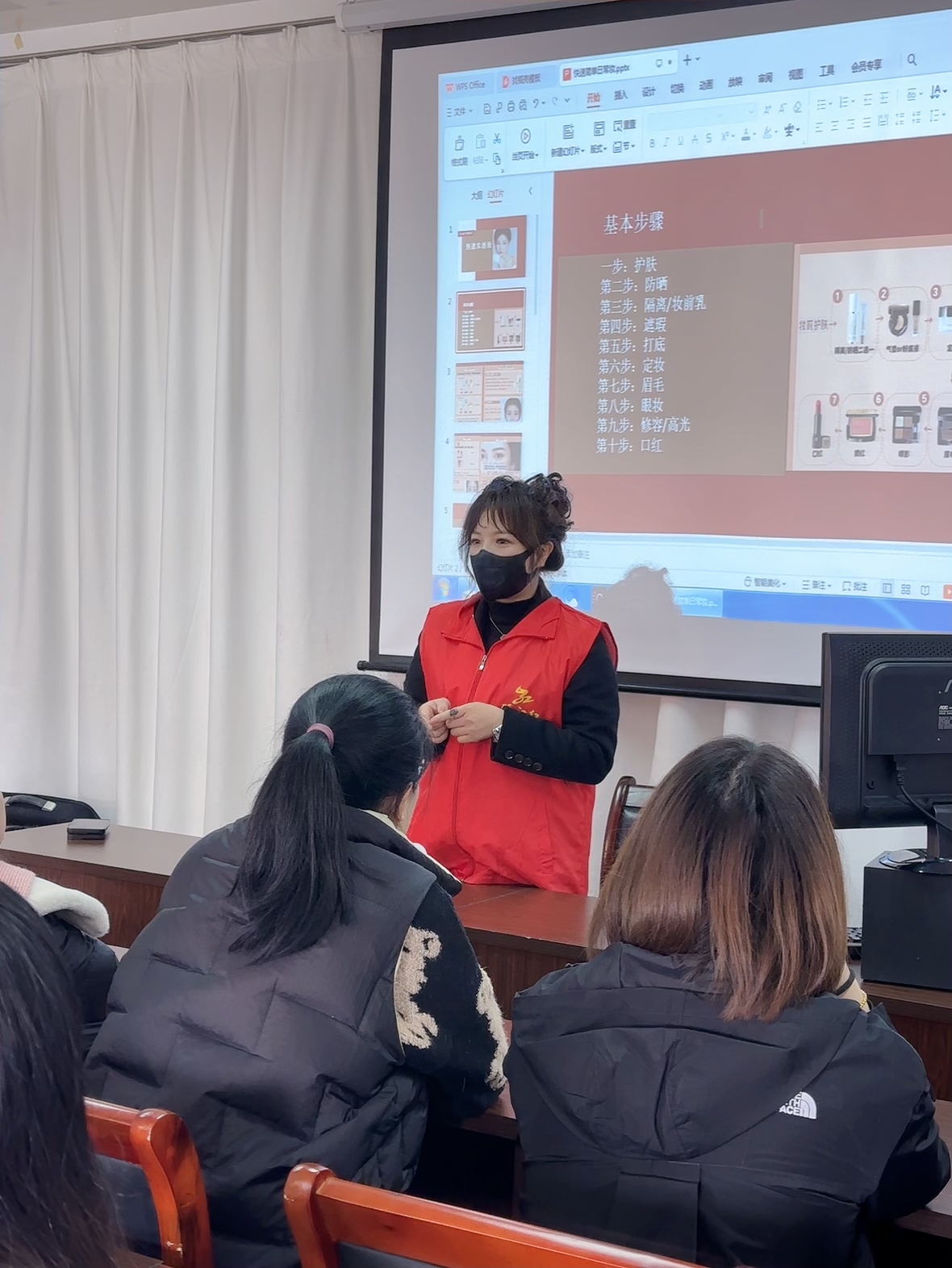我們的楊老師在本次活動中主要負責“妝點婦容美生活”版塊給大家科普護膚知識以及示范生活妝容化妝手法