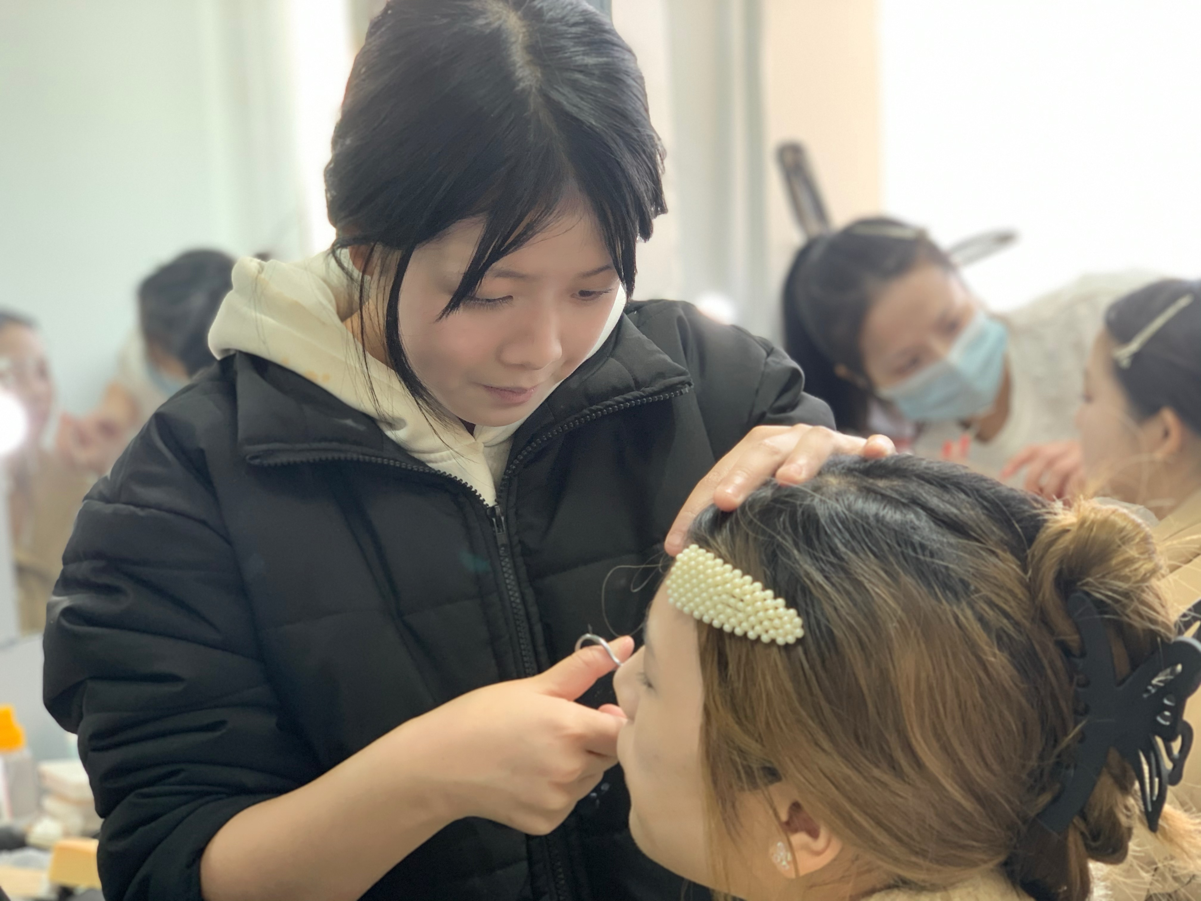 楊思怡,一位來(lái)自貴州的十二歲小姑娘,因?yàn)橄矚g化妝,家長(zhǎng)在網(wǎng)絡(luò)上搜索到陽(yáng)洋,帶著思怡來(lái)到陽(yáng)洋了解,了解過(guò)后發(fā)現(xiàn)各方面都很符合要求,于是就讓思怡在這邊學(xué)習(xí),思怡也希望通過(guò)學(xué)習(xí)將來(lái)可以開一家店