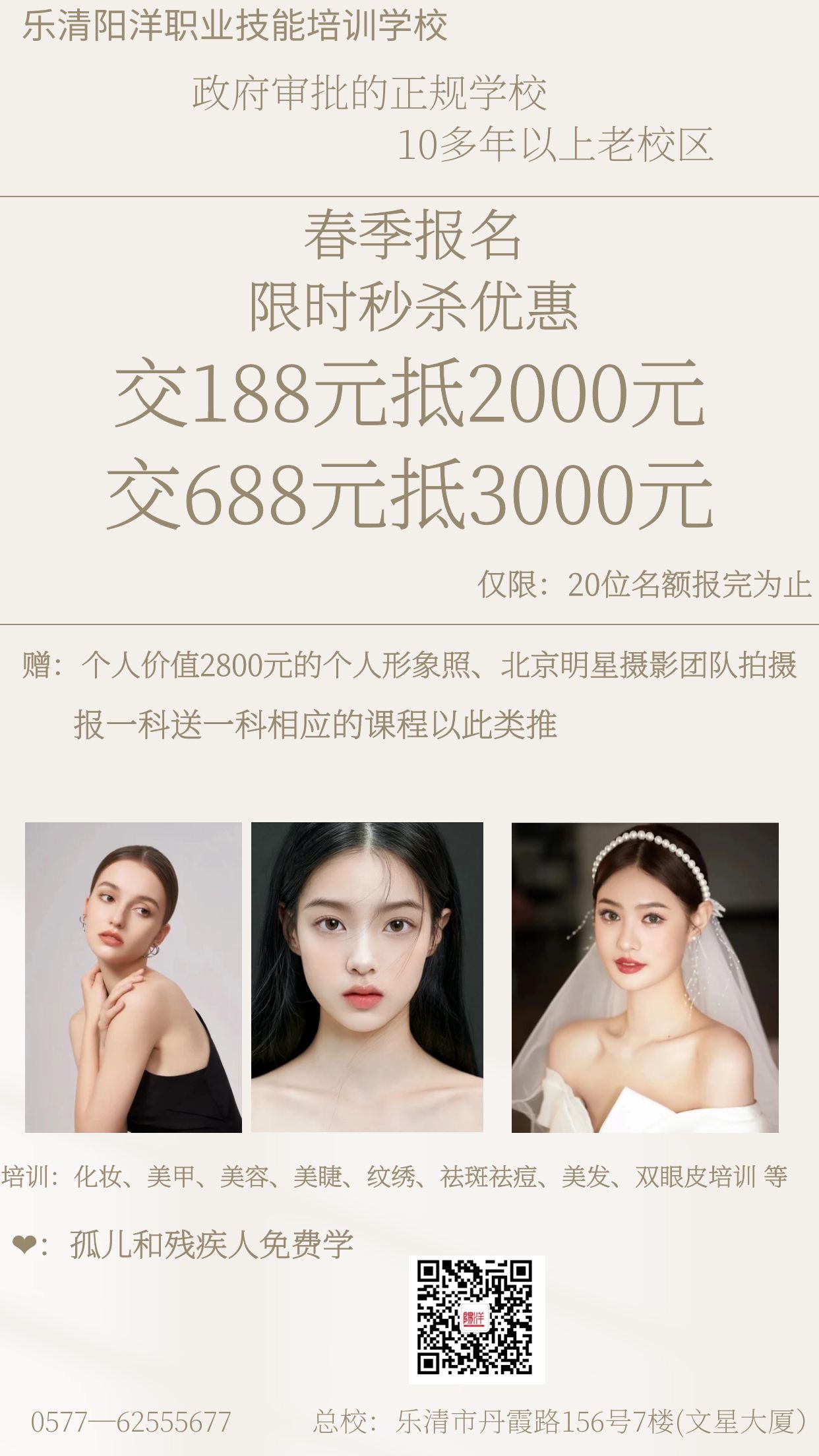 - 樂清陽洋化妝培訓學校喊你來砸金啦!你還在等什么?