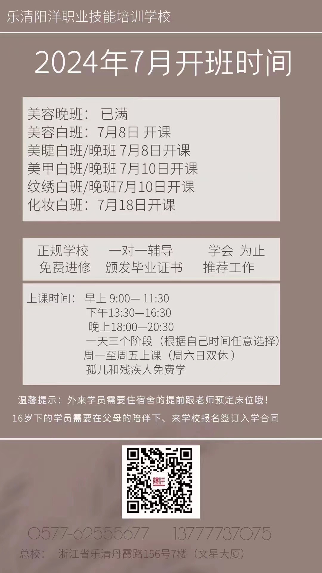 當(dāng)前位置:樂清市陽洋職業(yè)技能培訓(xùn)學(xué)校 » 學(xué)校新聞樂清陽洋7月開課時間 |樂清哪里有學(xué)化妝|樂清哪里有學(xué)美甲發(fā)布時間:2024-7-5 15:49:07 瀏覽次數(shù):1976 |