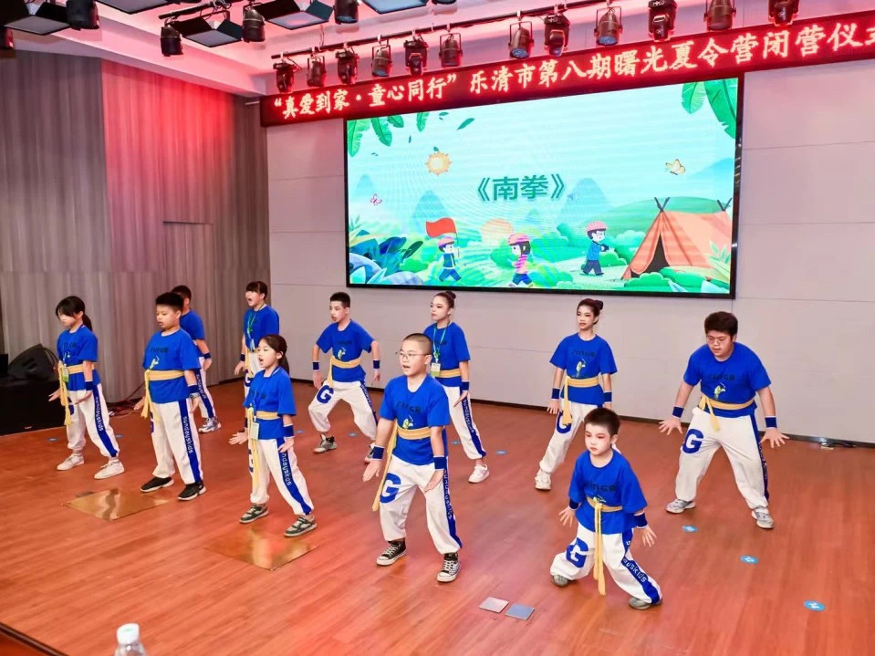 小營員在舞臺上表演手語舞《中國人中國字》,充分展現(xiàn)了中華文化的深厚底蘊(yùn)和優(yōu)美。在舞臺上表演南拳,充分體現(xiàn)中華武術(shù)的深厚底蘊(yùn),本次閉幕的造型皆有我校所化。