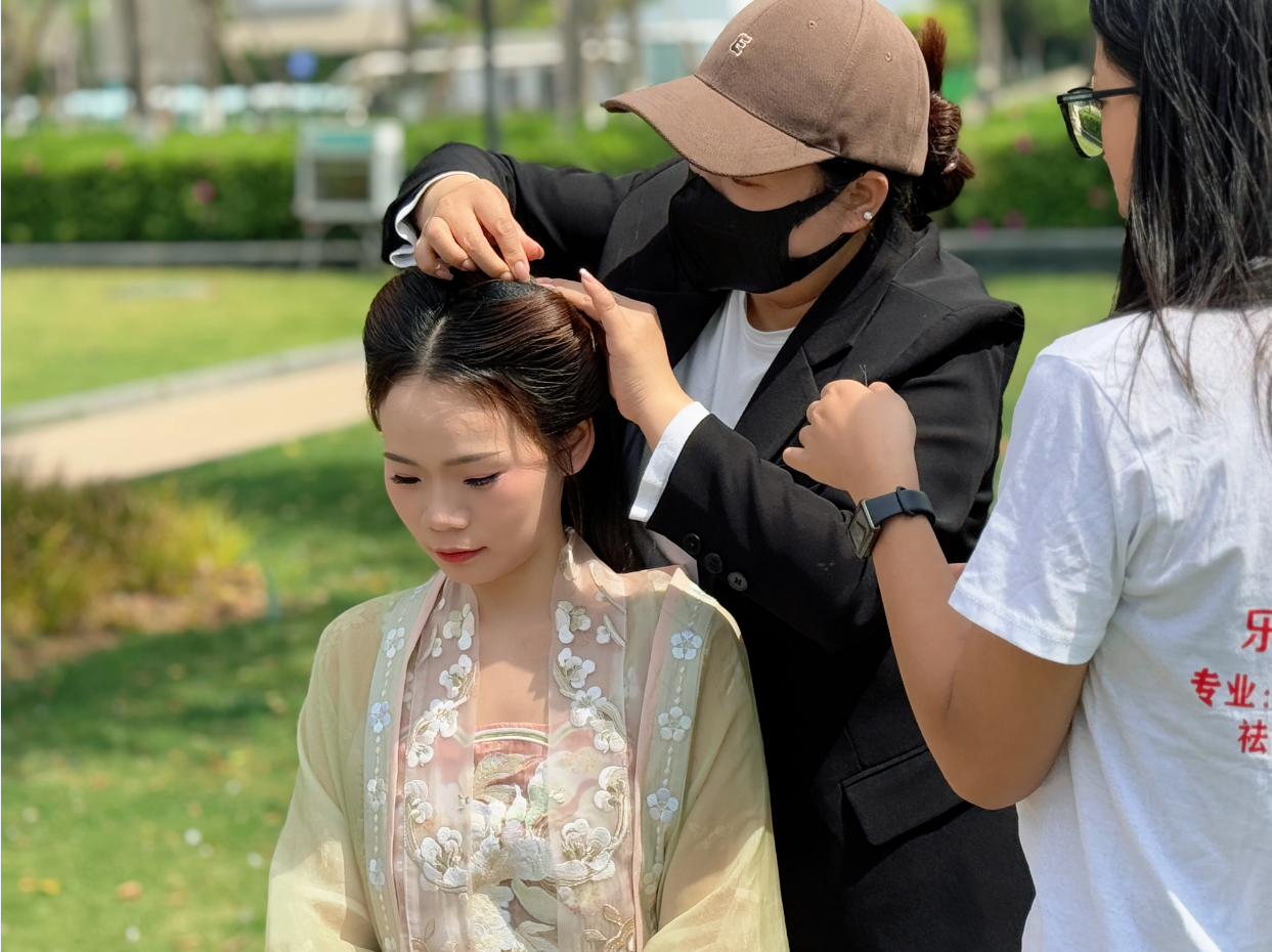 在陽(yáng)光明媚的春日,陽(yáng)洋化妝學(xué)校的師生們帶著滿(mǎn)滿(mǎn)的熱情與專(zhuān)業(yè)工具,走進(jìn)了樂(lè)清清和公園,開(kāi)展了一場(chǎng)別開(kāi)生面的漢服妝創(chuàng)作活動(dòng)。這場(chǎng)活動(dòng)不僅為公園增添了一抹古韻,更充分展現(xiàn)了陽(yáng)洋化妝學(xué)校獨(dú)特的教學(xué)理念與專(zhuān)業(yè)實(shí)力。