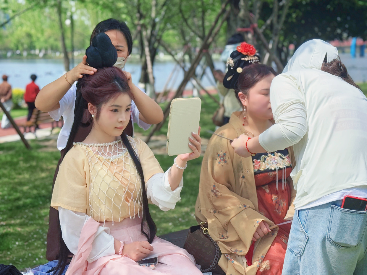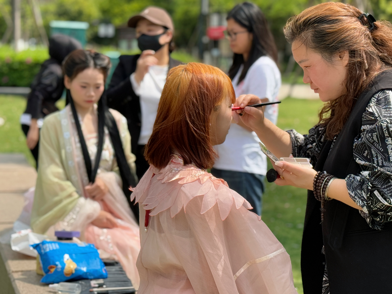 當(dāng)漢服妝遇上清和公園 陽(yáng)洋化妝學(xué)校的古韻新風(fēng)