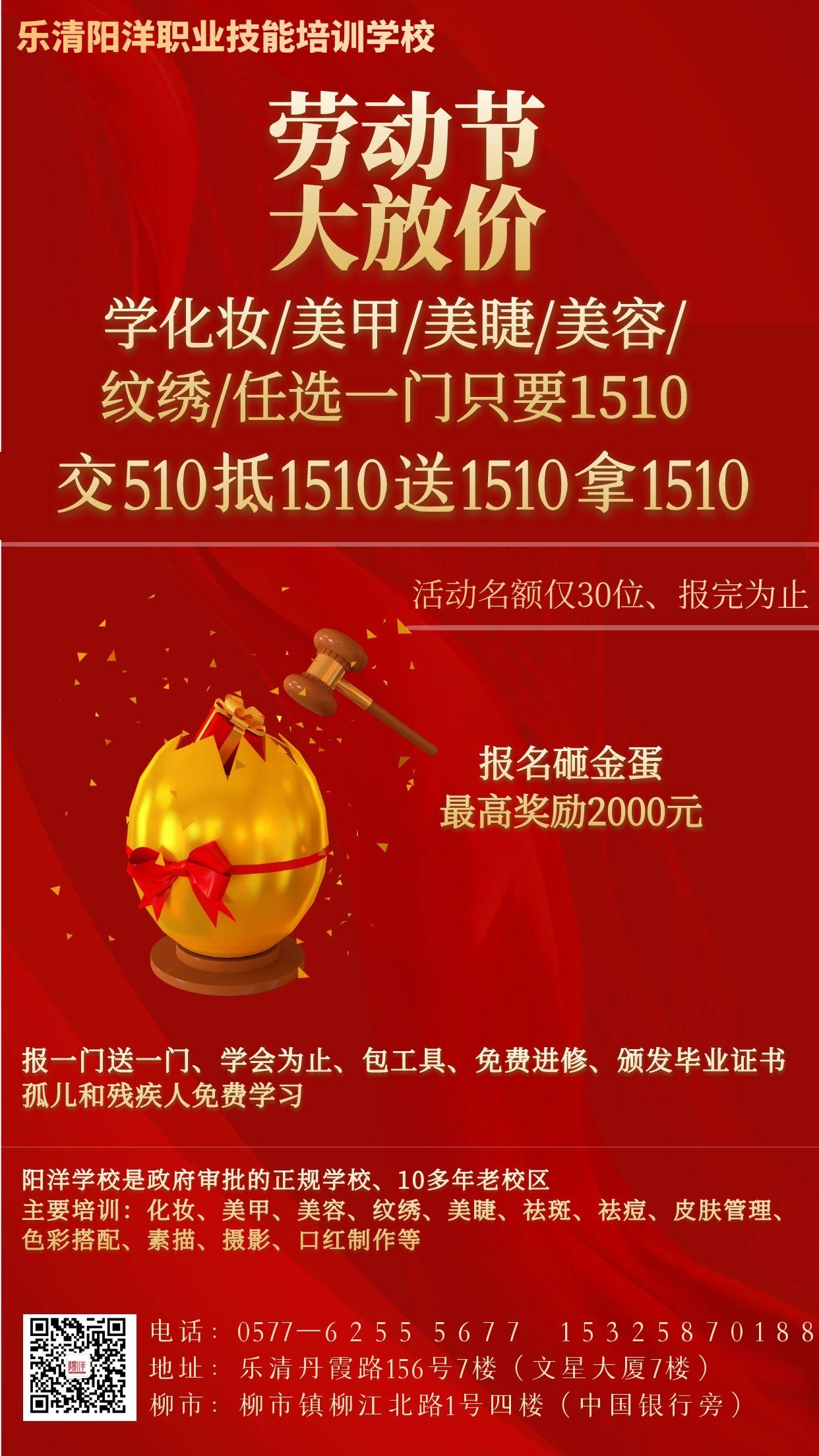 當前位置:樂清市陽洋職業(yè)技能培訓學校 » 學校新聞五一勞動節(jié)大放價活動|樂清哪里有學化妝|樂清化妝學校|樂清美甲學校發(fā)布時間:2025-4-24 16:50:51 瀏覽次數(shù):2004 |