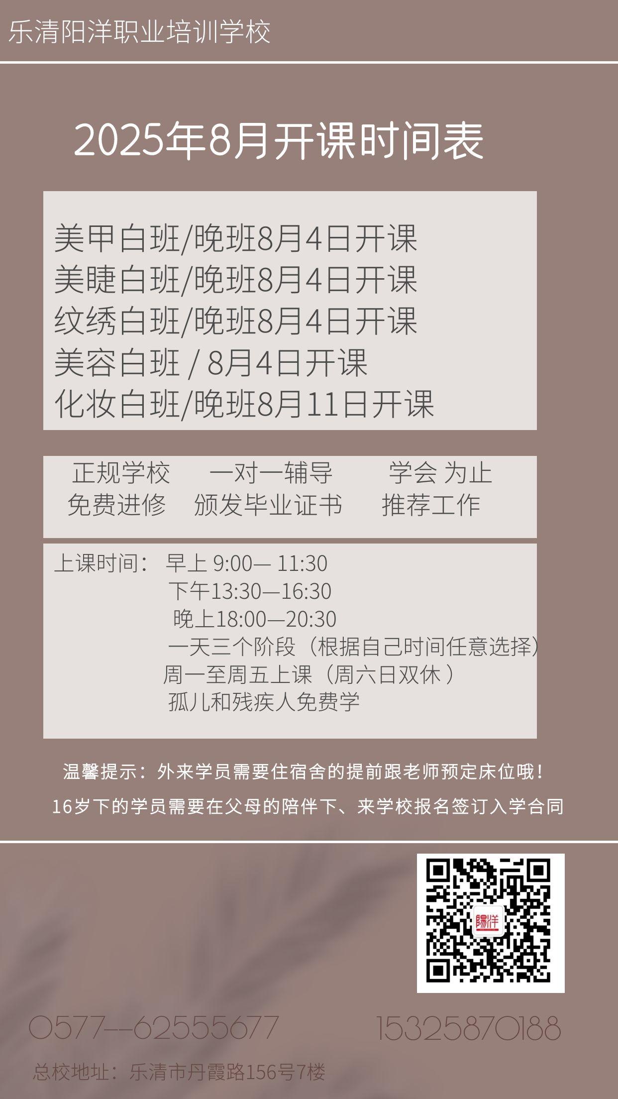 當(dāng)前位置:樂清市陽洋職業(yè)技能培訓(xùn)學(xué)校 » 學(xué)校新聞2025年8月開課時間表|樂清哪里有學(xué)化妝|柳市哪里有學(xué)化妝|虹橋哪里有學(xué)化妝|發(fā)布時間:2025-7-26 17:57:53 瀏覽次數(shù):2039 |