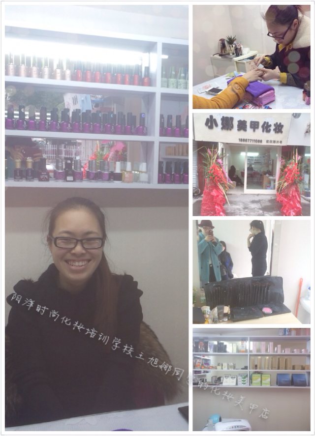 2013年11月17日畢業(yè)于樂清陽洋時尚化妝美甲培訓(xùn)學(xué)校學(xué)生!王旭娜同學(xué)開的一家屬于自己的化妝美甲店!2014年1月8日開業(yè)!祝愿小娜化妝美甲店生意興隆!一分付出十分收入!旭娜加油?。。?/span>