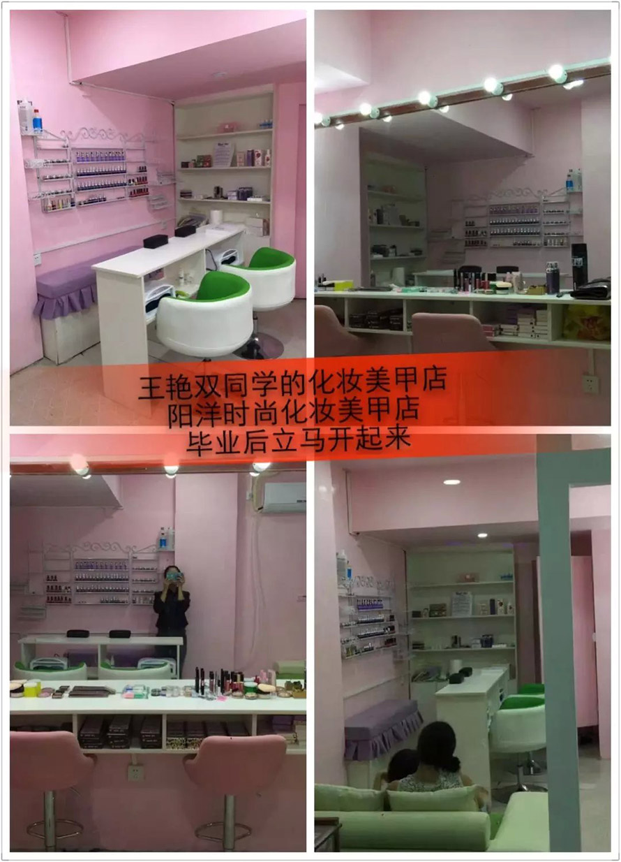 當(dāng)前位置:樂清市陽洋職業(yè)技能培訓(xùn)學(xué)校 » 成功學(xué)員優(yōu)秀化妝學(xué)員王艷雙同學(xué)在回老家開的化妝美甲店——后宮化妝室發(fā)布時(shí)間:2015-10-18 10:17:52瀏覽次數(shù):1968 |