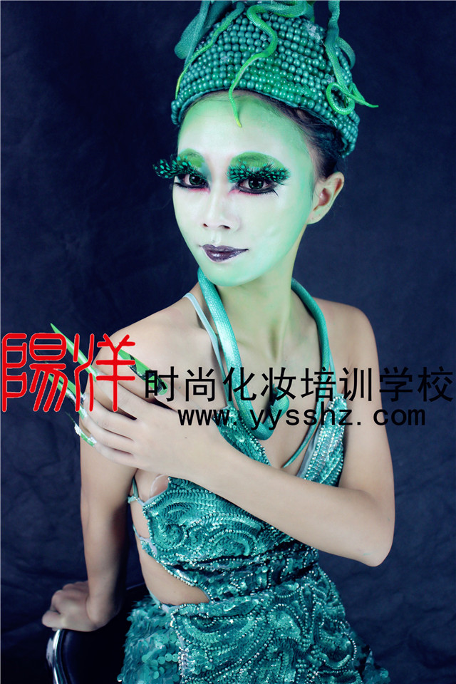 二等獎:學習化妝三個月的陽洋學員付苗苗 大膽的想象力,已青蛇為主題創(chuàng)意出此次作品!