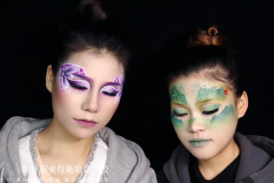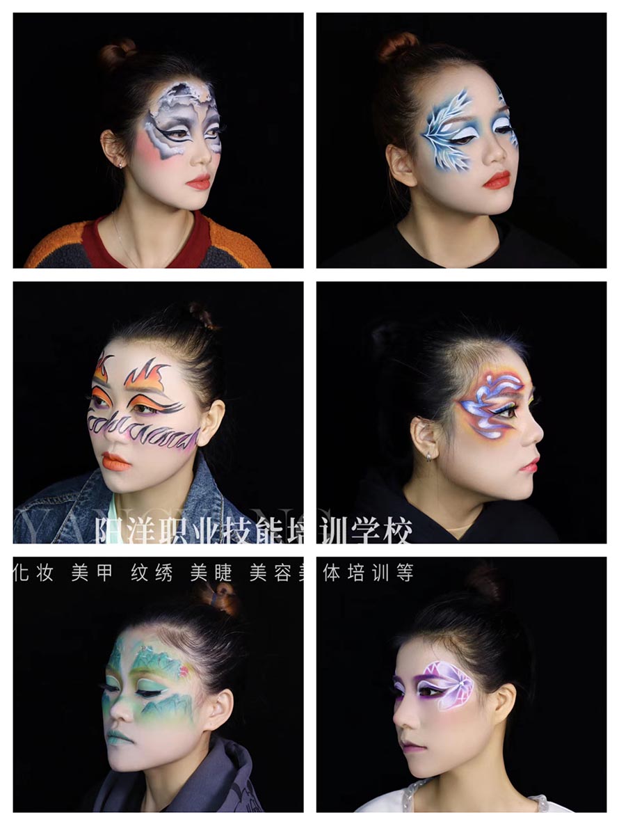 以下是陽洋化妝培訓(xùn)學(xué)?;瘖y班學(xué)員畢業(yè)考核之一《創(chuàng)意舞臺(tái)妝》