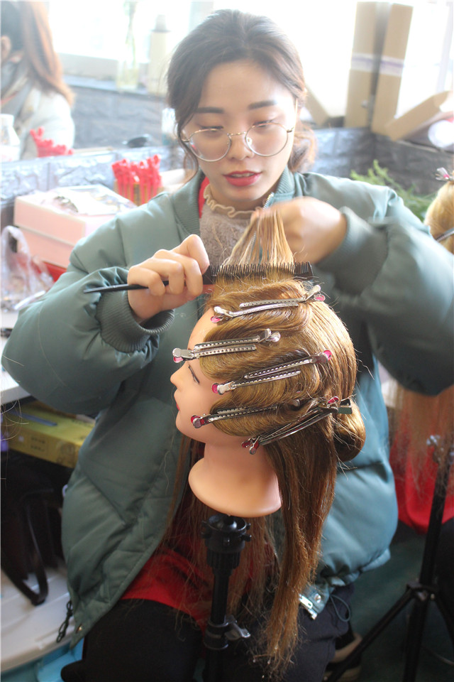陽洋化妝美甲紋繡培訓(xùn)學(xué)校也致力于實戰(zhàn)實用培訓(xùn),很多來我們這邊學(xué)習(xí)都是想就業(yè)或者自己創(chuàng)業(yè)的,所以培訓(xùn)技術(shù)的同時也要滿足不同學(xué)生的需求,所以平時工作難度和強度要比正常教學(xué)會辛苦很多。但是看到學(xué)生滿載而歸的收貨時,這些付出都是值得的 【2017年第十屆化妝精英班發(fā)型考試花絮】