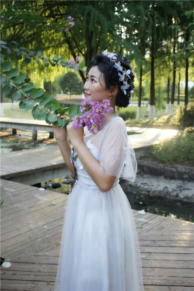 陽(yáng)洋學(xué)校帶同學(xué)們一起體驗(yàn)了一番置身于大自然所帶來(lái)的新娘造型的美感,大自然的綠色背景,白色的你,一抹陽(yáng)光灑在臉上,溫柔而美好