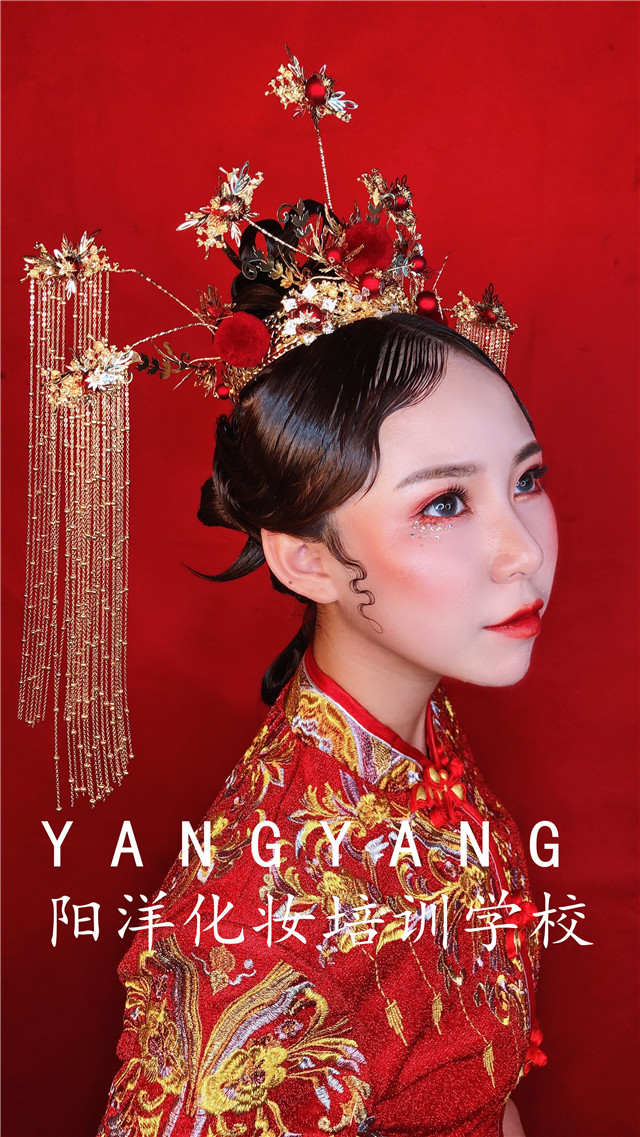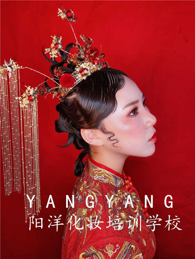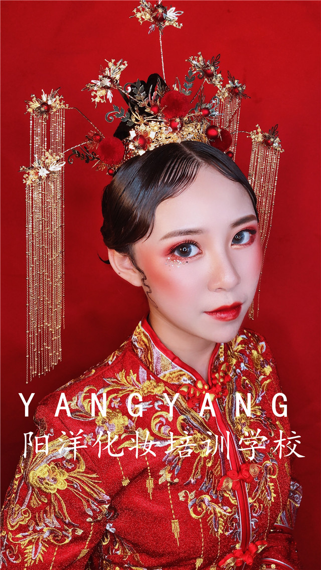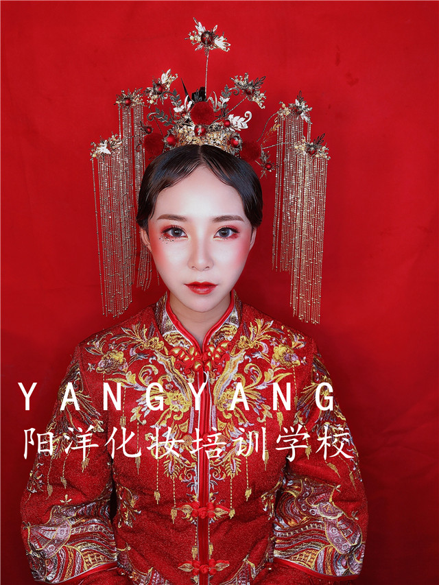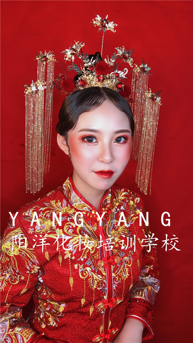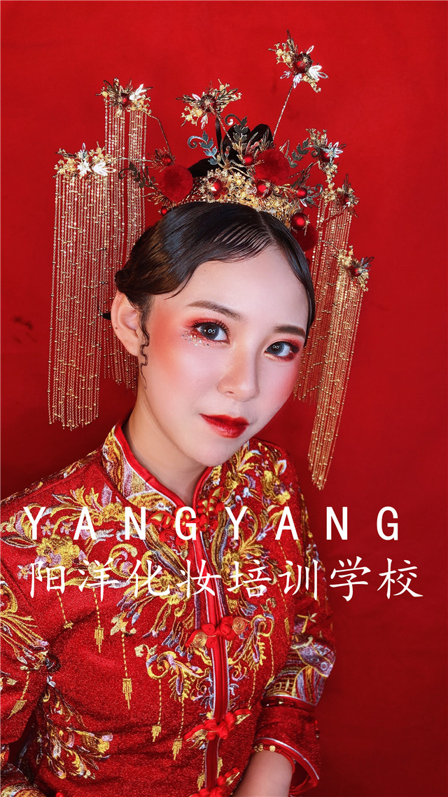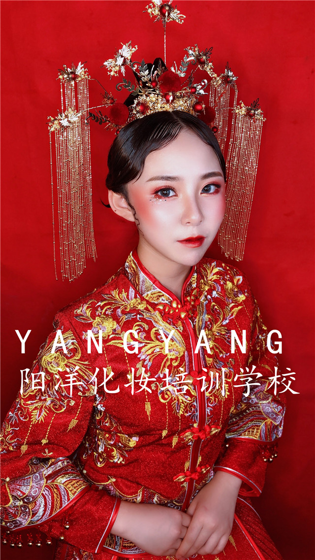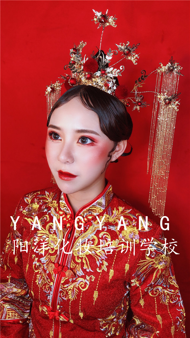 陽洋學校秀和新娘篇 現(xiàn)下婚禮上出現(xiàn)做多的新娘造型無疑就是秀和新娘 滿滿的中國風味,特別養(yǎng)眼