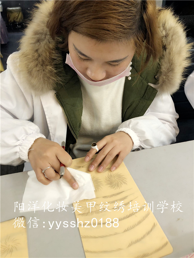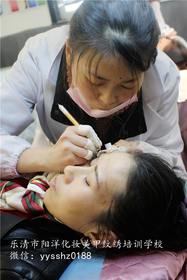1、熱愛紋繡藝術(shù)的社會青年; 2、美容院、化妝工作室、美甲工作室、美發(fā)店增加(紋繡項目)的老板; 3、從事于紋繡創(chuàng)業(yè)的愛好者; 4、在校美容師、美發(fā)師、化妝師、美甲師等學員。 二、學期:7-15天 三,開課時間:2018年1月18日 四、上課地點:樂清市陽洋化妝美甲紋繡培訓學校(清遠路60號4-6樓) 五、教學模式:采用小班制、每期限名額教學、零基礎(chǔ)、理論與實操相結(jié)合,從一個點、一條線起步,由淺入深。專業(yè)的老師老師一對一指導(dǎo),手把手教學,幫助你更好的掌握半永久基礎(chǔ)知識和操作技巧,讓你迅速成為具有專業(yè)水準的紋繡師。