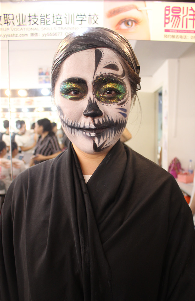 當(dāng)前位置:樂清市陽(yáng)洋職業(yè)技能培訓(xùn)學(xué)校 » 學(xué)生作品化妝|骷髏妝,樂清陽(yáng)洋教你這樣玩發(fā)布時(shí)間:2016-9-9 16:04:01瀏覽次數(shù):1977 |