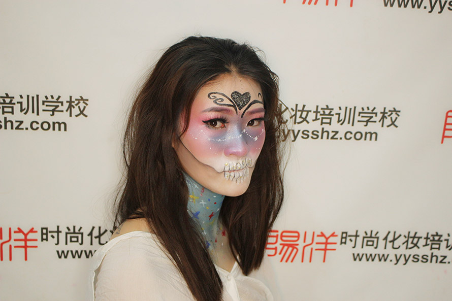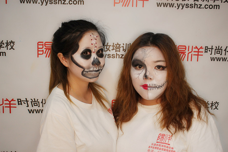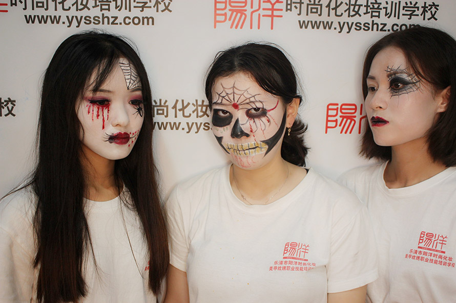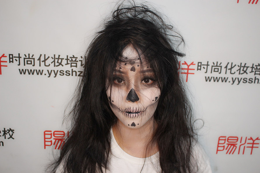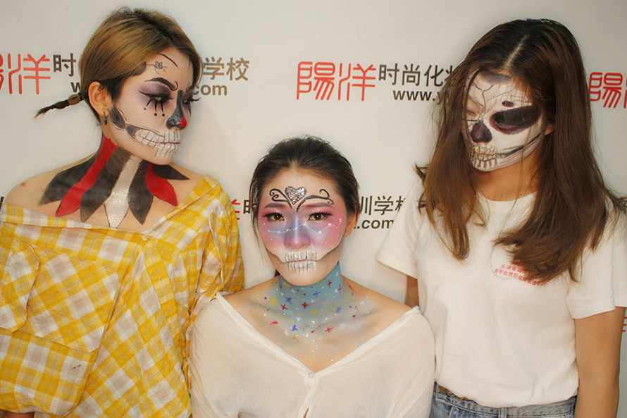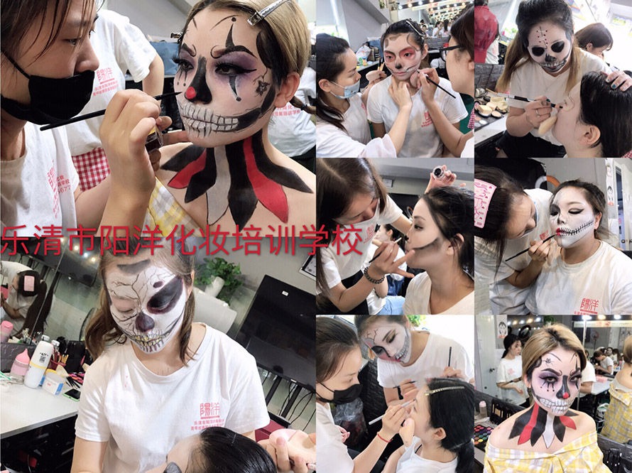 今日小編給大家?guī)硪唤M陽洋學(xué)生們的鬼面作品,先來看看大家是怎么化的吧! 學(xué)員對(duì)練妝容
