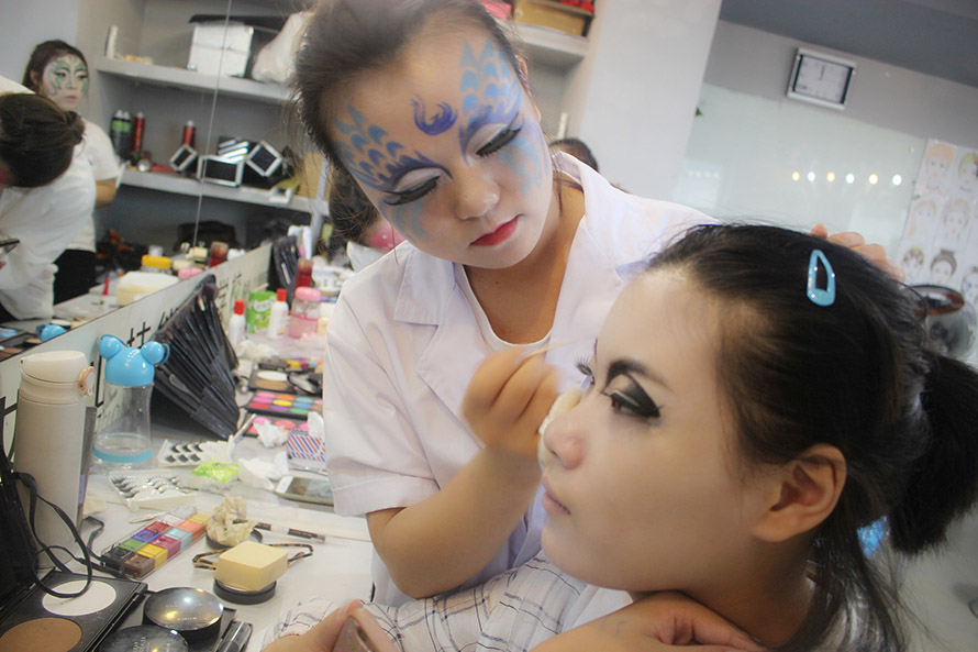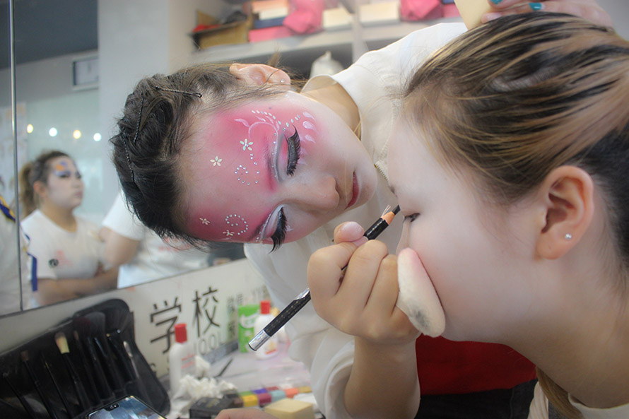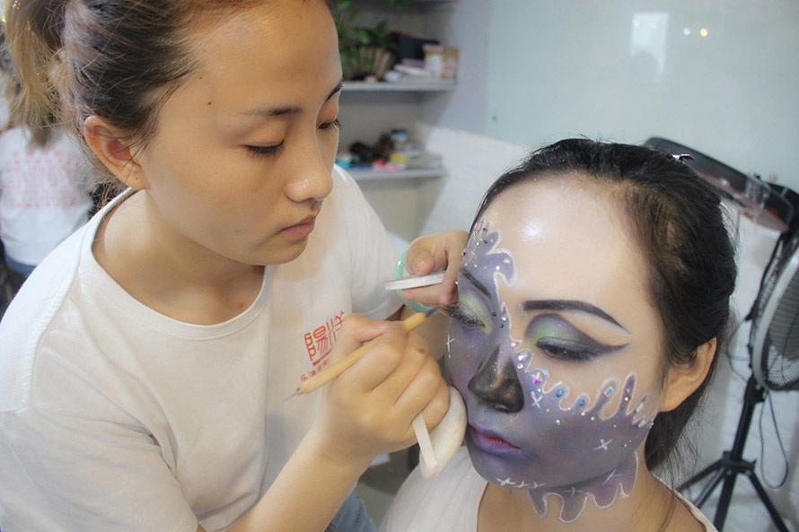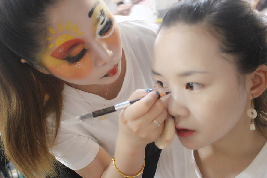 在陽洋化妝學(xué)?!拔摇睂W(xué)會了彩繪和舞臺妝