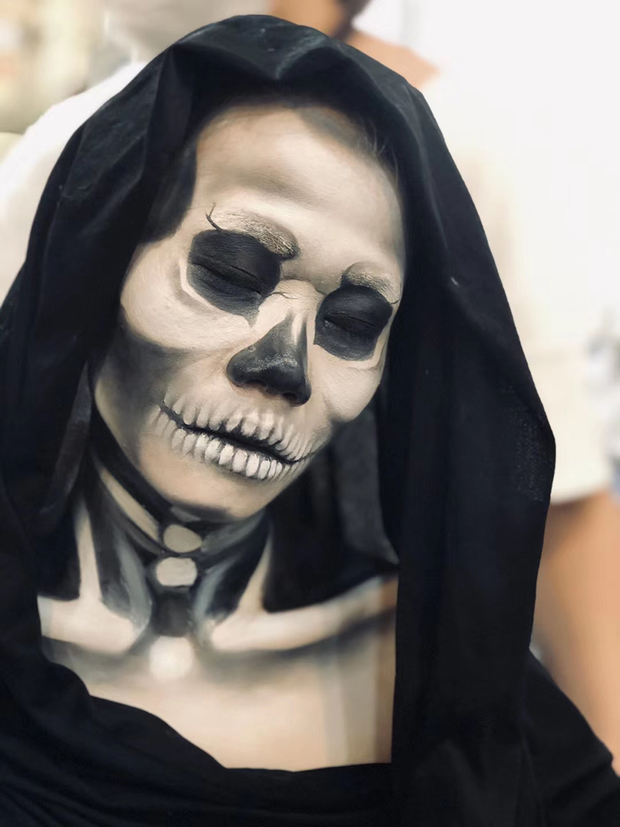 骷髏妝常用于萬圣節(jié),小型變裝聚會,影視拍攝,還有雜志特效拍攝等。