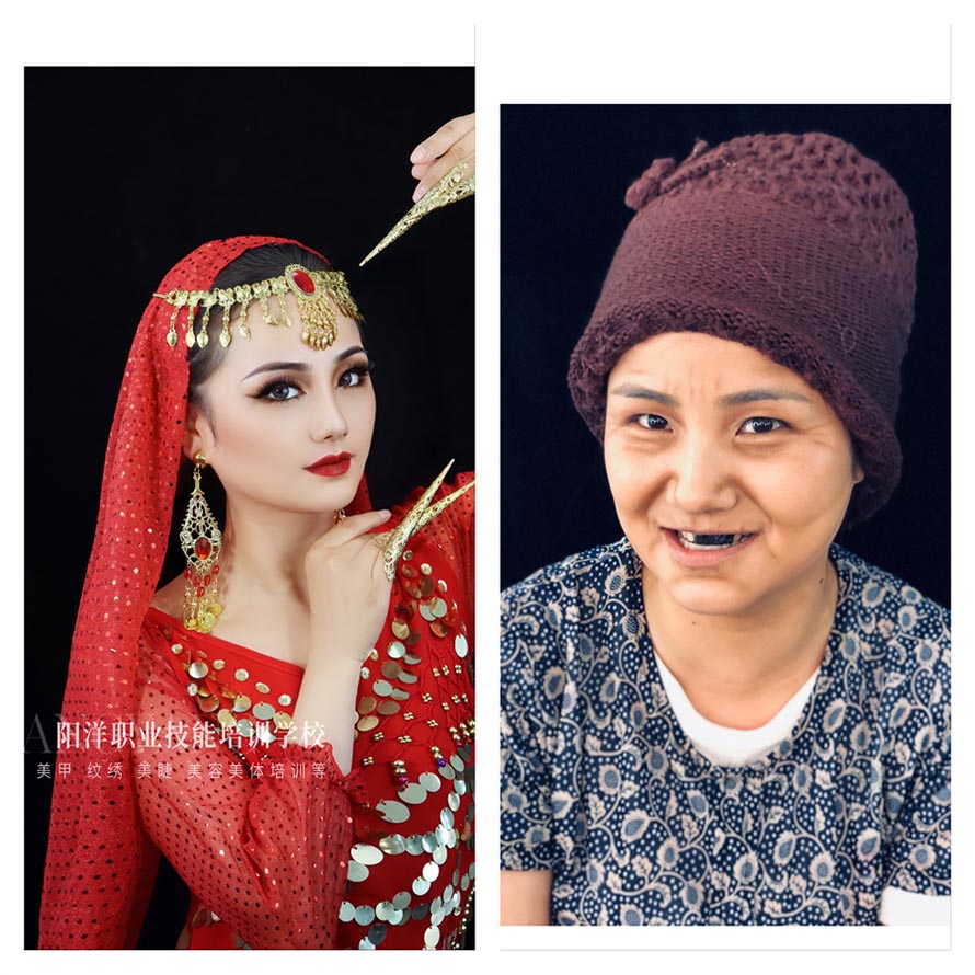 老人妝跟其他妝容對比。同一個模特是不是區(qū)別很大呢?