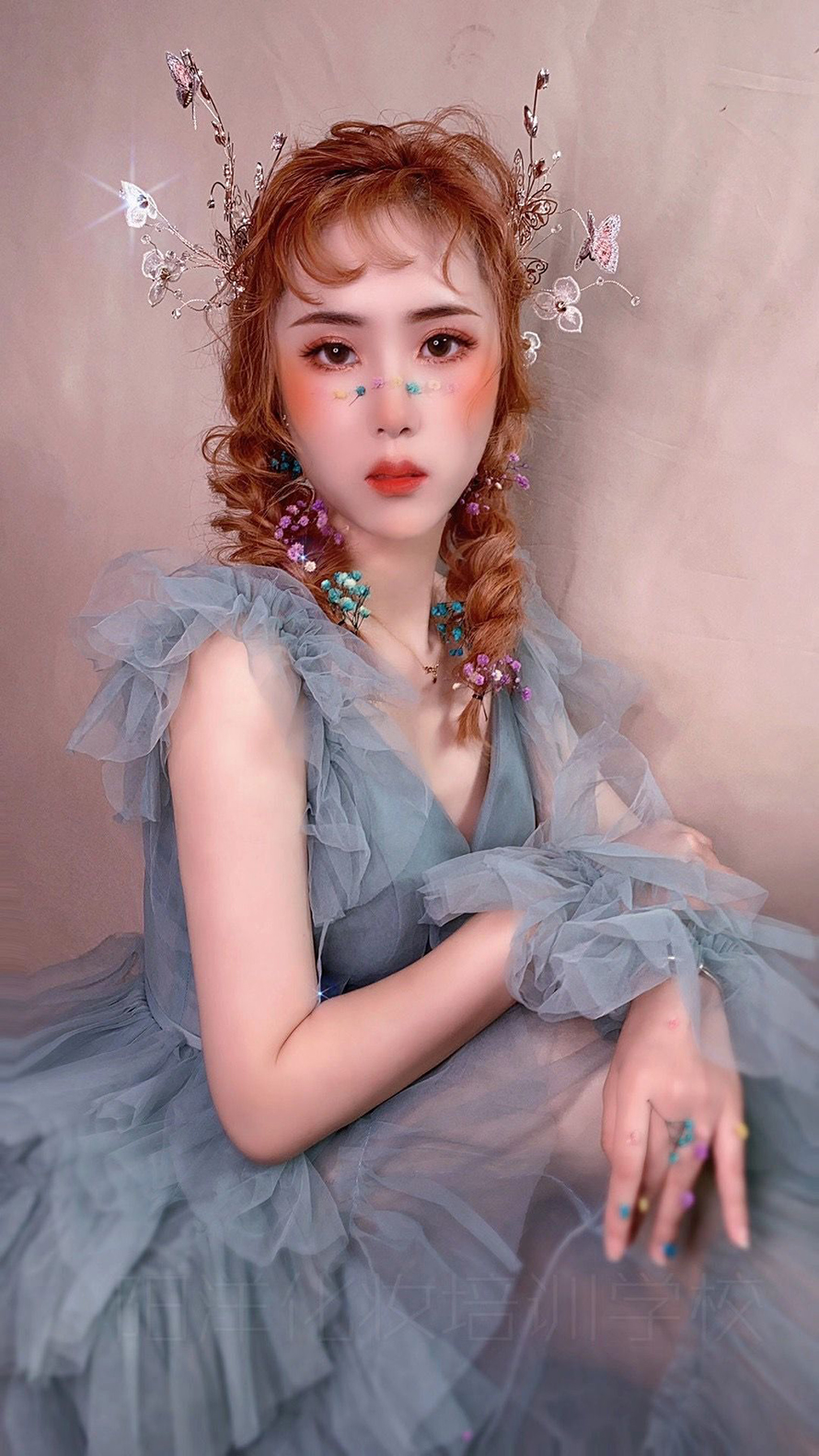 | 頭飾,衣服都是同樣的東西搭配,作為專(zhuān)業(yè)化妝師,同樣的一件衣服要變換出不一樣的風(fēng)格[呲牙] 模特:本校學(xué)生-田瑩慧、劉婷銥 妝發(fā):菲菲老師